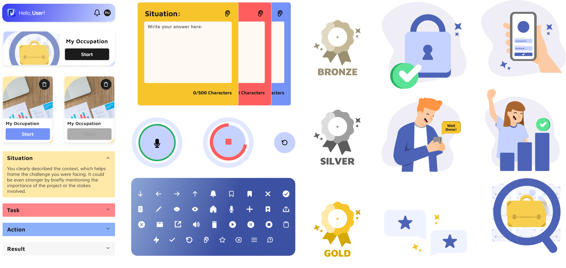 PrepUp’s design system establishes a consistent, friendly, and confidence-driven experience across all platforms. It blends modern typography, energetic colors, and simple UI patterns to help job seekers feel supported throughout their interview journey.